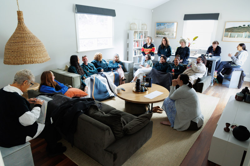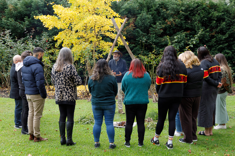 The Ancestors in possum skin cloaks stand together strong beneath the ancient trees and Elders, showing the way.