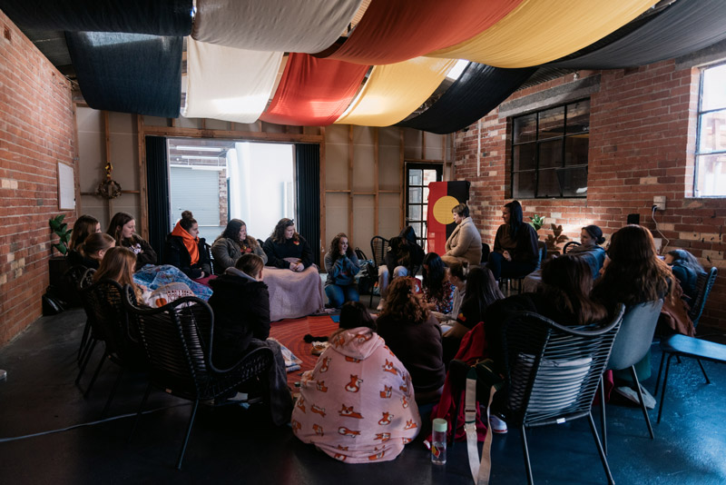 Journey around this artwork with purpose and you will learn about our story of Balance created and shared by Shawana Andrews (Palawa) 2020 ©. ‘Balance across time, place and people through relationship, respect, reciprocity and responsibility.’